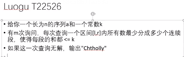序列和问题的贪心方法:左右端点一定要选到,那么自然是能往里面放就多放几个;【贪心正确】