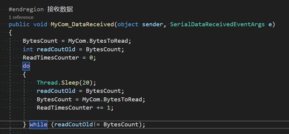 方法一的缺点是代码量大,而且是明明可以等待若干毫秒后,接收缓存区会自动填满。这这时再去取值。就无需自动建立“缓存区”。这个方法属于重复建立缓存区。