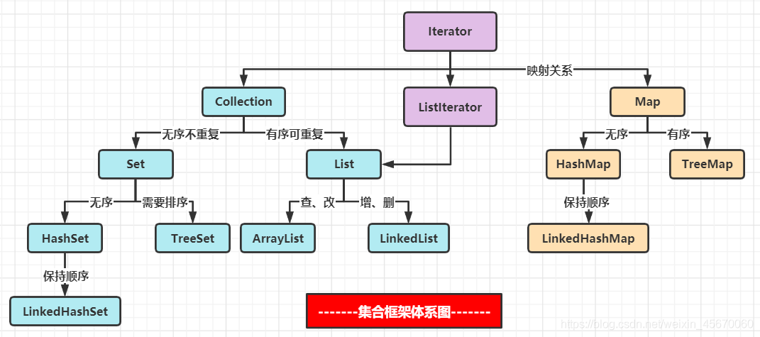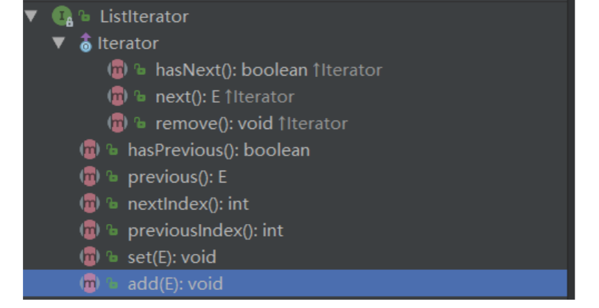 Collection返回的是Iterator迭代器接⼝,⽽List中⼜有它⾃⼰对应的实现-->ListIterator接⼝ 该接⼝⽐普通的Iterator接⼝多了⼏个⽅法