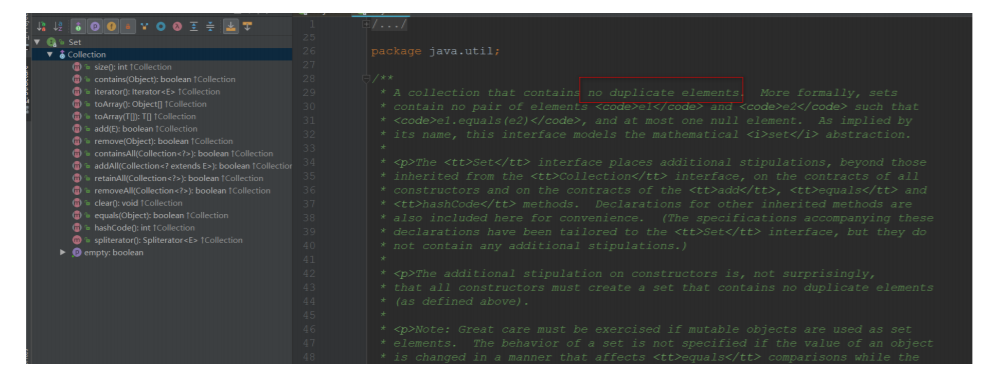 从Set集合的⽅法我们可以看到:⽅法没有⽐Collection要多