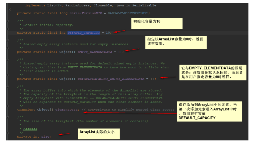 根据上⾯我们可以清晰的发现:ArrayList底层其实就是⼀个数组,ArrayList中有扩容这么⼀个概念, 正因为它扩容,所以它能够实现“动态”增⻓