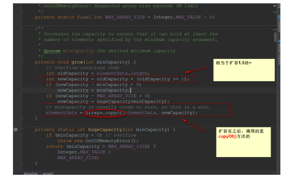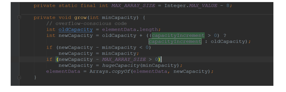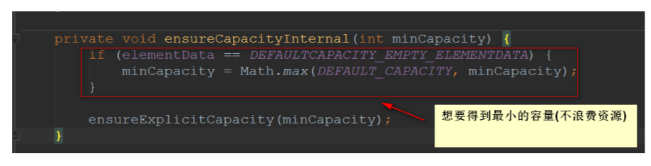 - 第⼀次扩容后,如果容量还是⼩于minCapacity,就将容量扩充为minCapacity。