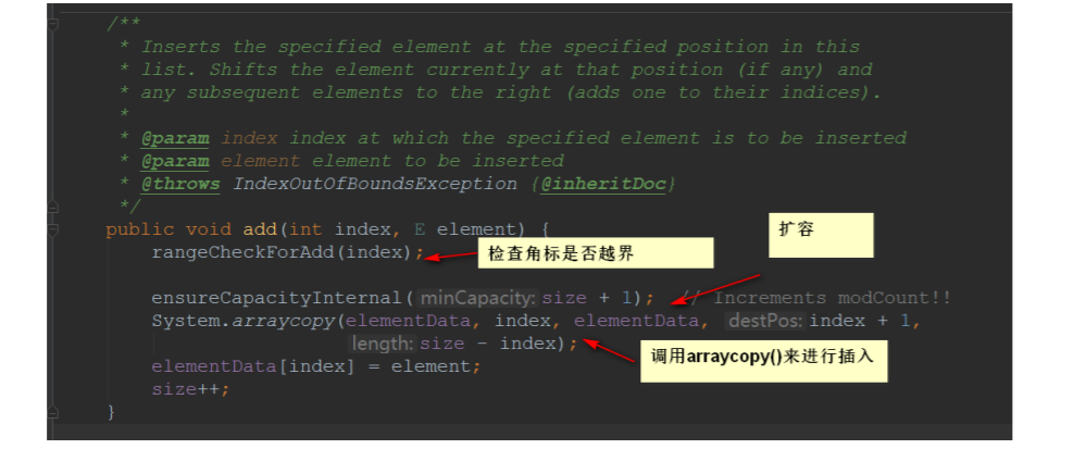- 检查是否需要扩容 插⼊元素,确认list容量,尝试容量加1,看看有⽆必要