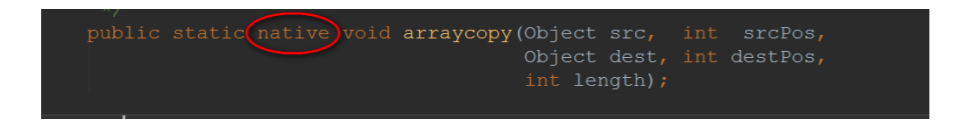 我们发现,与扩容相关ArrayList的add⽅法底层其实都是 arraycopy() 来实现的 看到 arraycopy() ,我们可以发现:该⽅法是由C/C++来编写的,并不是由Java实现: