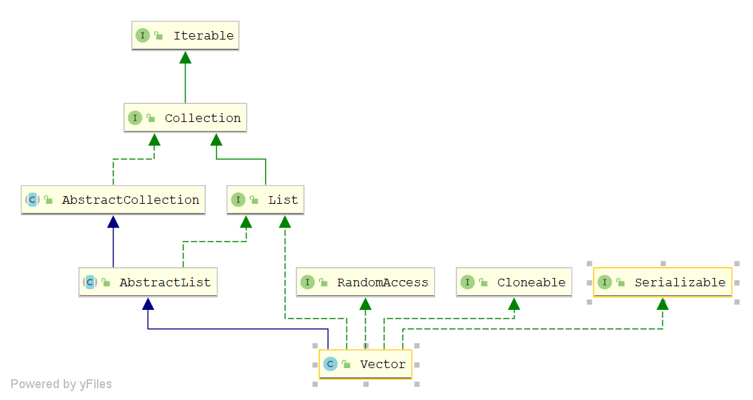 Vector是jdk1.2的类了,⽐较⽼旧的⼀个集合类。