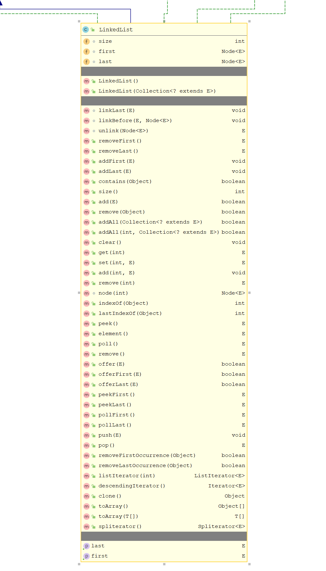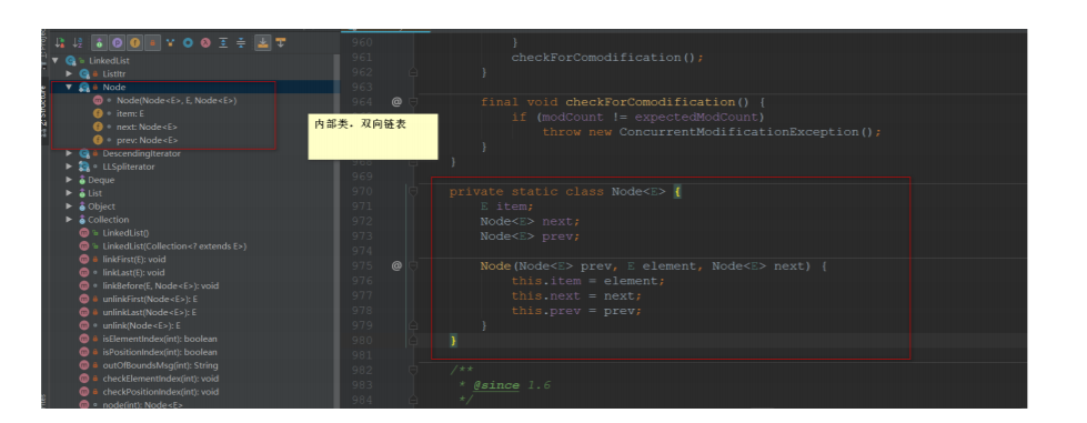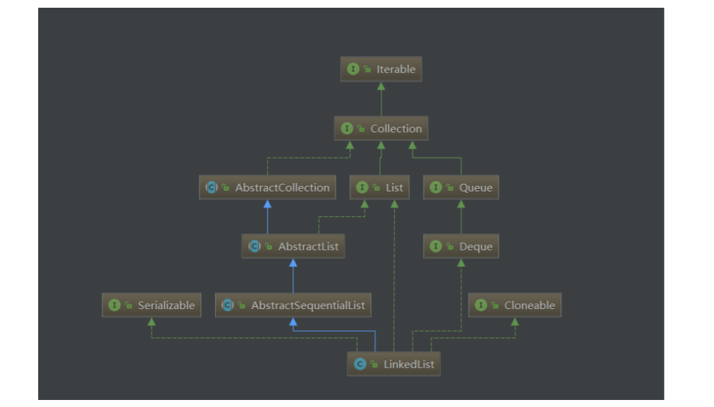 从结构上,我们还看到了LinkedList实现了Deque接⼝,因此,我们可以操作LinkedList像操作队列 和栈⼀样