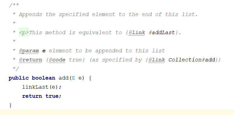到⽬前为⽌,我们就可以知道 add(E e) 的基本实现了: