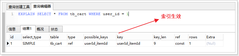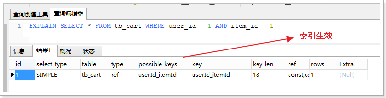 开启索引语句: