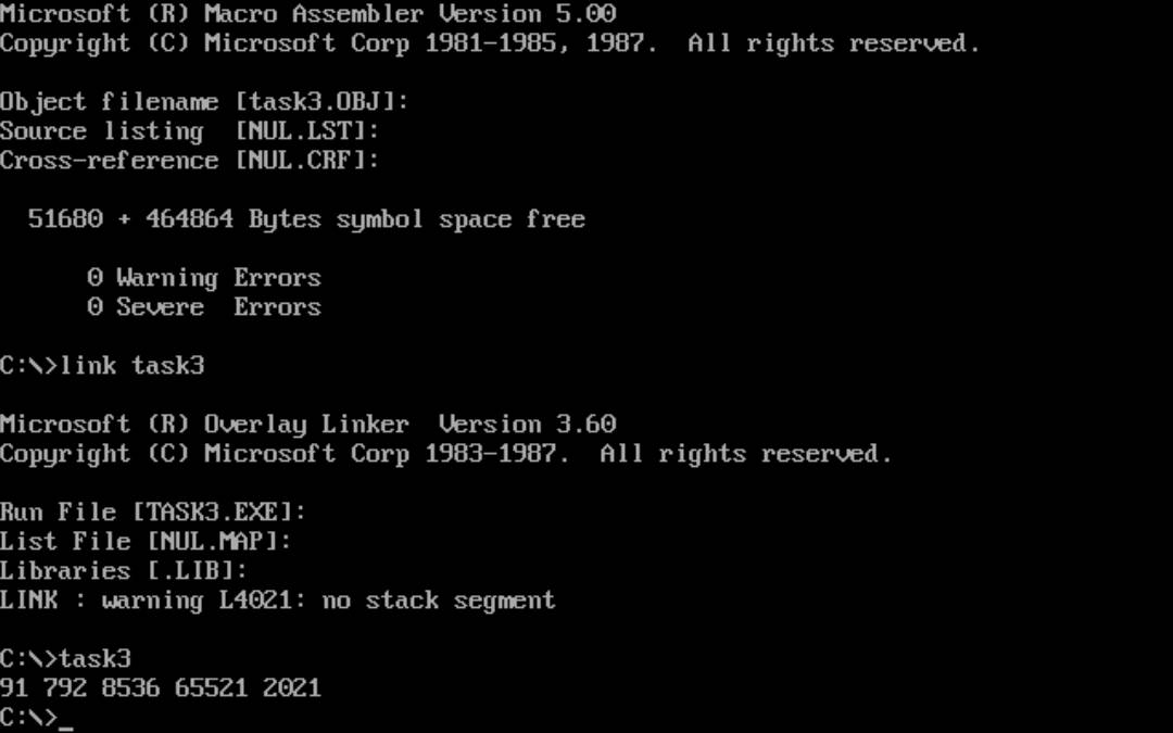 对源程序task2.asm进行汇编、链接,得到可执行文件task2.exe。