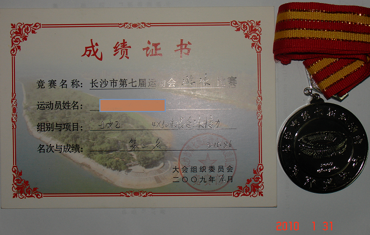 2009年9月6日继续参加4X50米自由泳接力,为第一名。