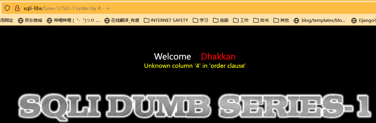 查询当前表下字段:order by 3(输入大于3报错则证明有三个字段)