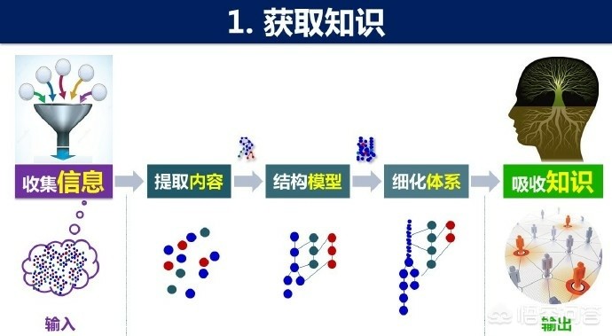 例如把松散的知识形成一个个“知识晶体”就是一个好方法。知识晶体说的是一堆知识点形成的稳定的架构。将单个的知识点变成知识晶体的常见方法有:①运用关联关系,比如马斯洛需求理论、SWOT分析、公式等;②运用树状结构,比如书的目录、SMART法则、思维导图等;③运用序列关系,比如工作流程图、操作说明书的步骤指南等;④运用数据结构,比如各种统计上的柱状图、圆饼图、成长曲线等。