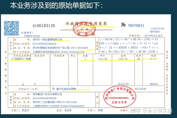 案例:2019年6月,郑州天一物业管理有限公司为宣传新产品发生广告费1520元,款项通过银行转账支付并取得增值税专用发票。