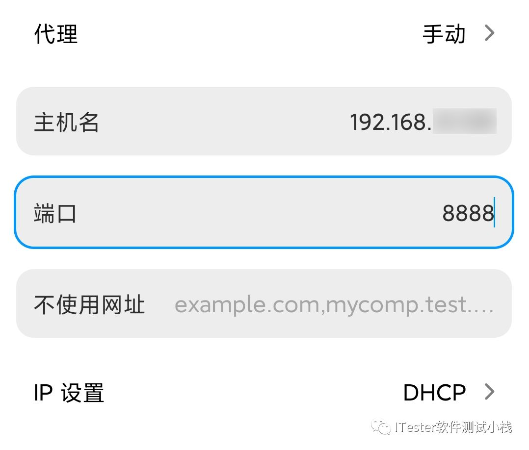 主机名和端口分别输入电脑ip及fiddler设置的代理端口,保存: