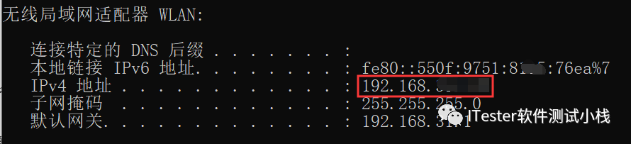 3.dos窗口下输入ipconfig,查看电脑ip: