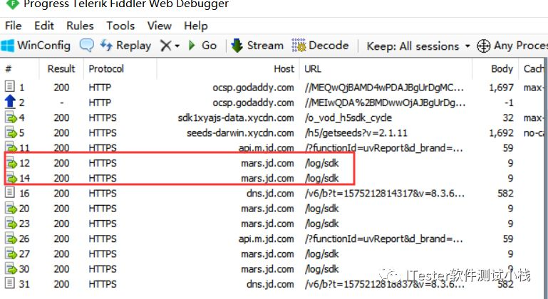6.设置完成后即可抓取app请求了,如下图是抓取的是京东app请求: