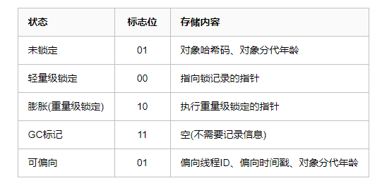 偏向锁功能可用时,若对象头存在线程ID,则为“已偏向状态”,否则为“可偏向状态”。