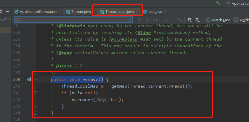 -- ThreadLocal类下有get,set,remove方法