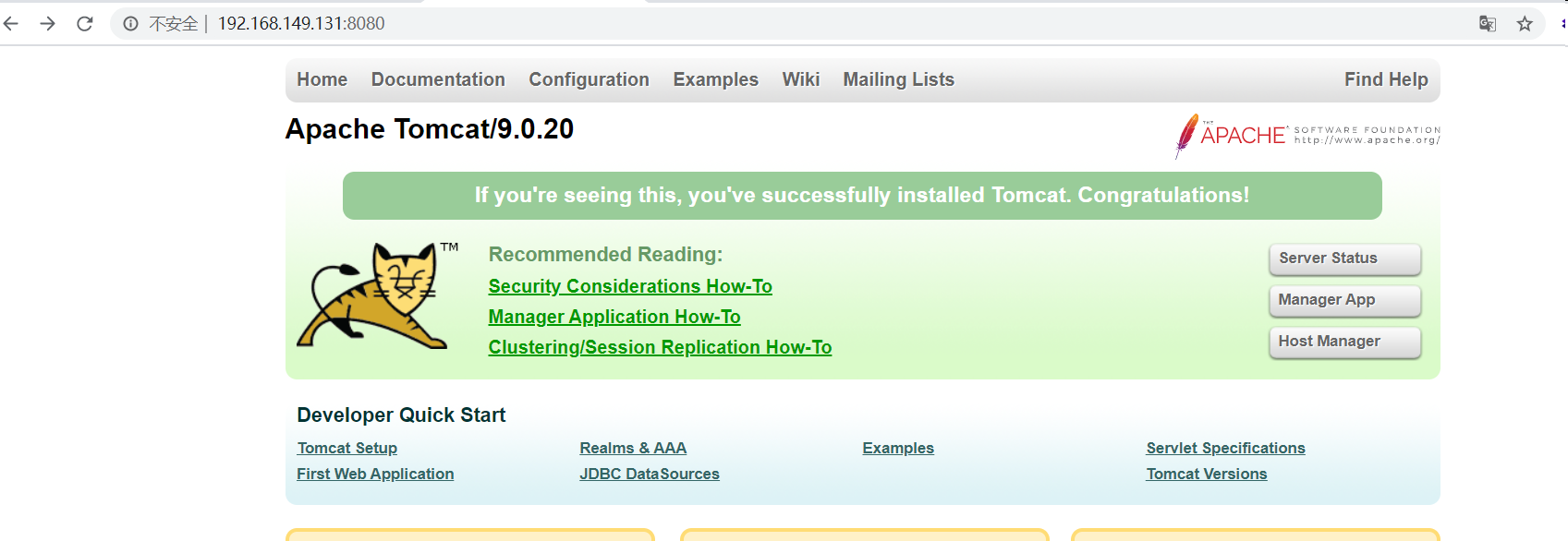 官网下载Tomcat版本9.0.20,在受影响范围内,搭建成功后