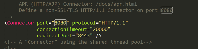 第二处连接器监听8080端口,负责建立HTTP连接。在通过浏览器访问Tomcat服务器的Web应用时,使用的就是这个连接器