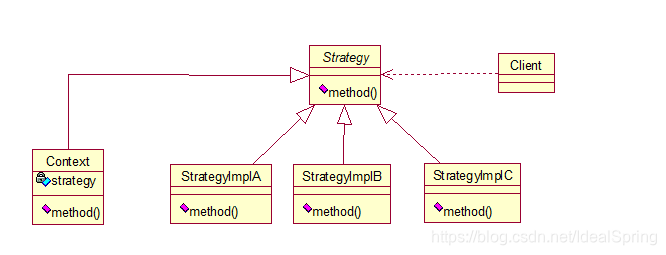 1.Strategy 定义所有支持的算法的公共接口。Context使用这个接口来调用某ConcreteStrategy定义的算法。