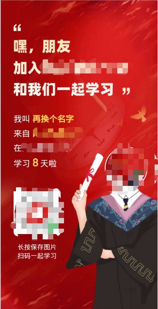1 <div class="share"> 2 <div class="imageWrapper" ref="imageWrapper"> 3 <img class="real_pic" :src="dataURL" /> 4 <!-- 需要转化为图片的DOM元素 --> 5 <slot> 6 <div class="canvas-bg"> 7 <img class="canvas-title" src="@/images/canvas-title.png" alt /> 8 <div class="canvas-info"> 9 <div class="info-content"> 10 <span>我叫</span> 11 <span>{{ userInfo.name }}</span> 12 </div> 13 <div class="info-content"> 14 <span>来自</span> 15 <span>{{ userInfo.userSchool }}</span> 16 </div> 17 <div class="info-content">在网上老年大学</div> 18 <div class="info-content"> 19 <span>学习</span> 20 <span class="study-day">{{ userInfo.study_day }}</span> 21 <span>天啦</span> 22 </div> 23 </div> 24 <div class="canvas-footer"> 25 <div class="canvas-user"> 26 <img :src="userInfo.user_image" alt /> 27 </div> 28 </div> 29 <div class="canvas-er"> 30 <img :src="userInfo.share_qrcode" alt /> 31 <div class="text">长按保存图片</div> 32 <div class="text">扫码一起学习</div> 33 </div> 34 </div> 35 </slot> 36 </div> 37 <div class="watermark">长按海报保存图片</div> 38 </div>