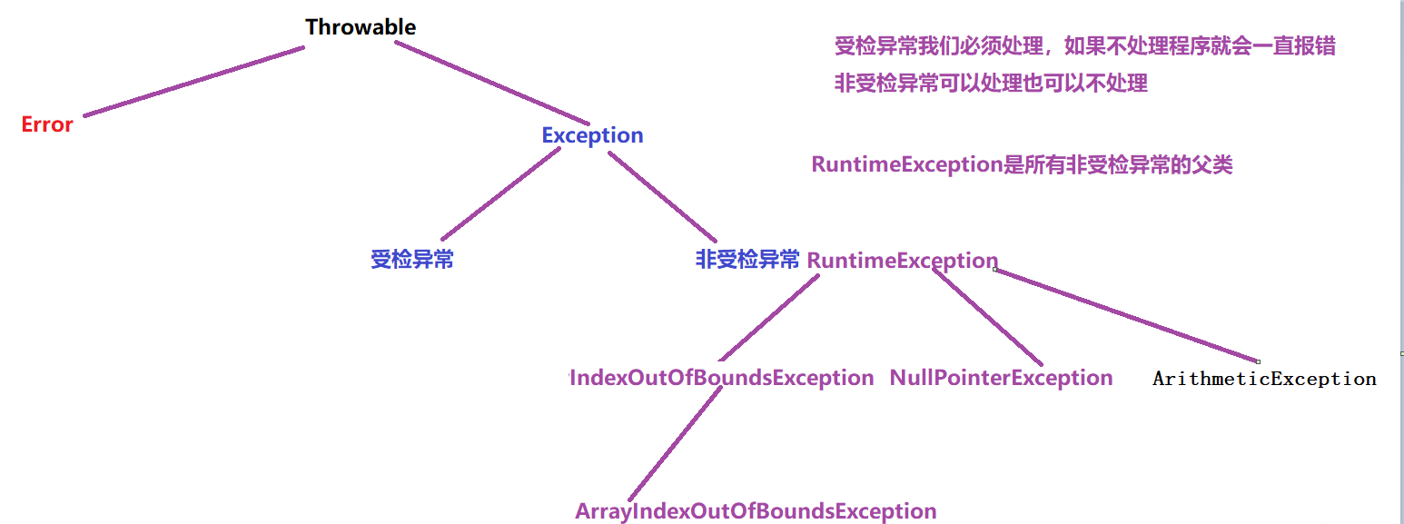 // 一个try后面可以跟多个catch,一旦try发生异常只能处理一次异常,此时第一个catch块处理异常