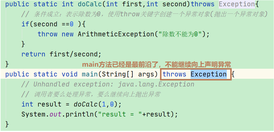 * throws Exception 为doCalc方法声明一个异常,该方法可能会抛出异常,也可能不抛出异常
