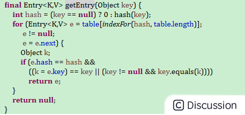 get方法只是使用了getEntry方法来返回value值,从源码中可以看出,其中使用的方法在put过程中也使用到了,所以在这就不一一解释了。