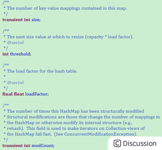 modCount:用于快速失败,HashMap的线程是不安全的,所以在其他线程操作时改变了HashMap的结构,就需要抛出异常;