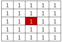 图像顶帽运算使用函数 morphologyEx() ,其参数 cv2.MORPH_TOPHAT 对应顶帽运算。 morphologyEx() 函数形式如下: dst = cv2.morphologyEx(src, cv2.MORPH_TOPHAT, kernel) 其中,参数: dst 表示处理的结果; src 表示原图像; cv2.MORPH_TOPHAT 表示顶帽运算; kernel 表示卷积核。 例如,下图表示 55 的卷积核,可以采用函数 np.ones((5,5), np.uint8) 构建。