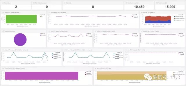 ELK实战举例二,通过ELK组件对系统资源状态监控,如图7、图8所示,是笔者前段时间使用ELK组件为集群提供日志查询和系统资源监控的例子。通过各类日志搜集,分析,过滤,存储并通过Kibana展现给用户,供用户实时监控系统资源、节点状态、磁盘、CPU、MEM,以及错误、警告信息等。