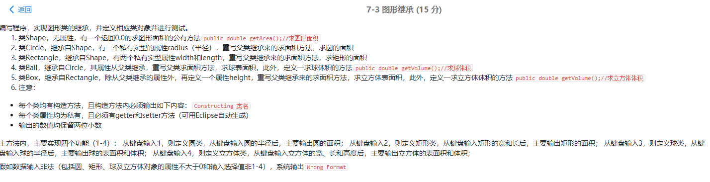 - 第一次题目没啥花里胡哨的要求,就是需要注意有个无参的构造方法输出 “Constructing Shape”