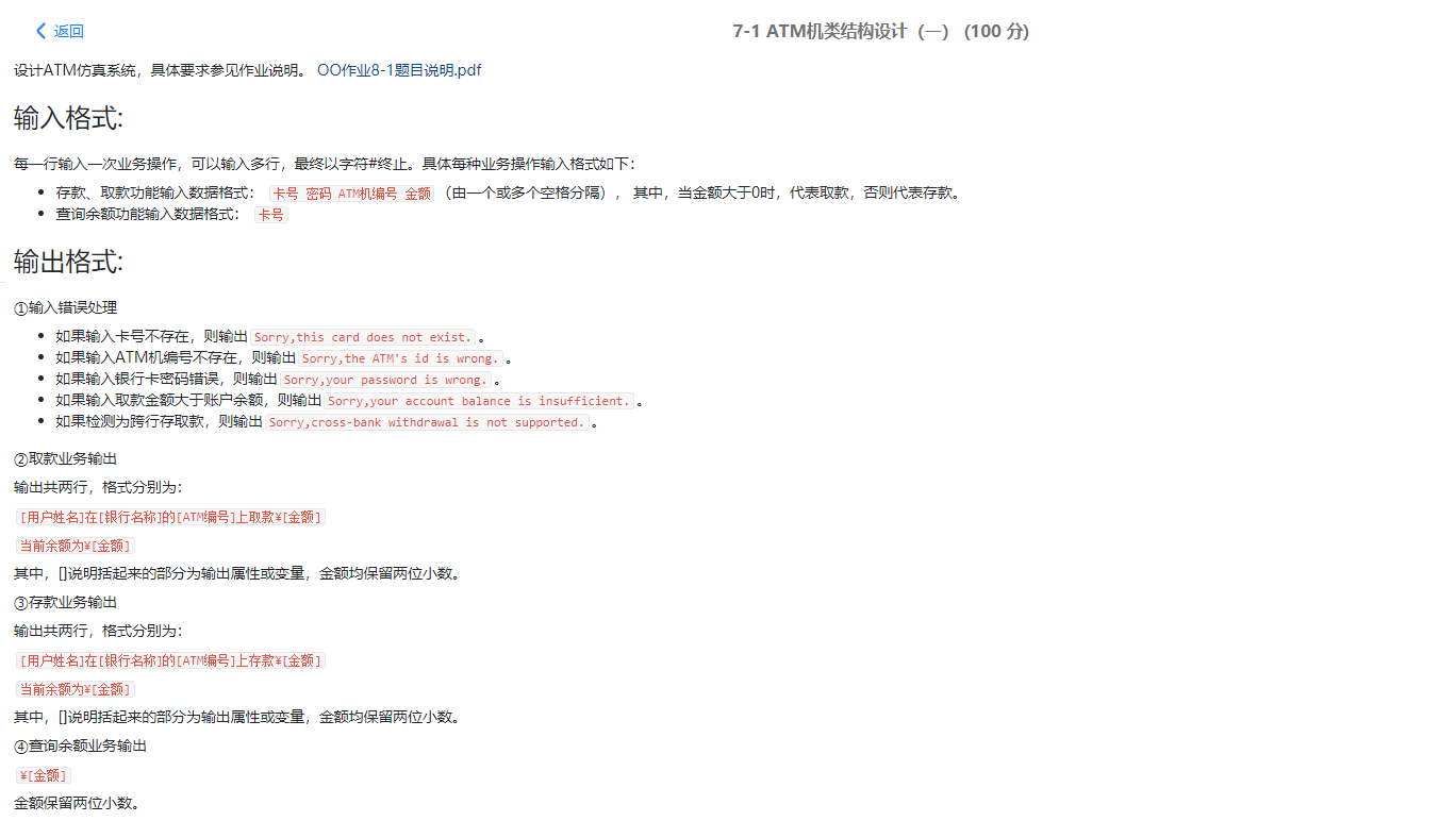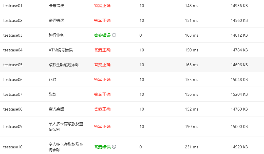 - 跨行操作的手续费与借贷卡的利息计算还是有些复杂,如下,但从测试样例看貌似张三丰莫名其妙被ATM多欠了10000多,应该是某个步骤重复了:
