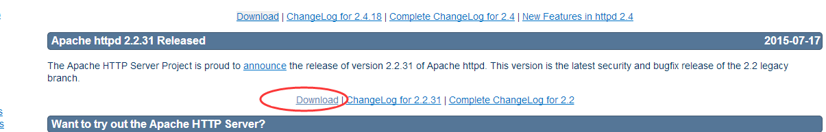 点击download,在下一页找到 Files for Microsoft Windows 这是下载windows使用的apache服务器