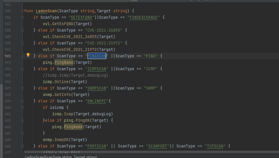 将输入的参数全部转为大写后进行匹配,符合进入ping.PingName()方法,位置在(ping/ping.go的74行)