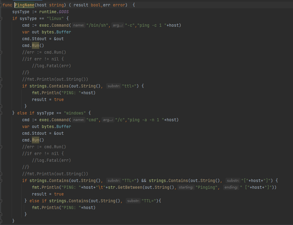通过使用strings.Contains判断是否包含ttl=来判断是否可以ping通