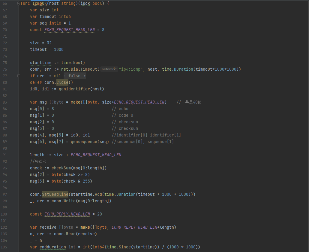 通过IcmpOK()方法进行判断,跳到66行IcmpOK()