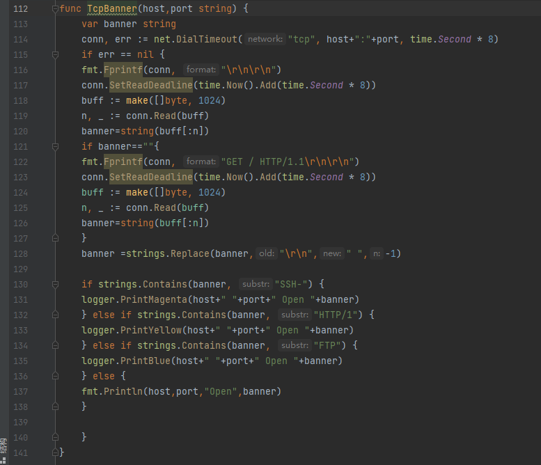 159行进入TcpBanner()方法 tcp/tcpBanner.go/TcpBanner()