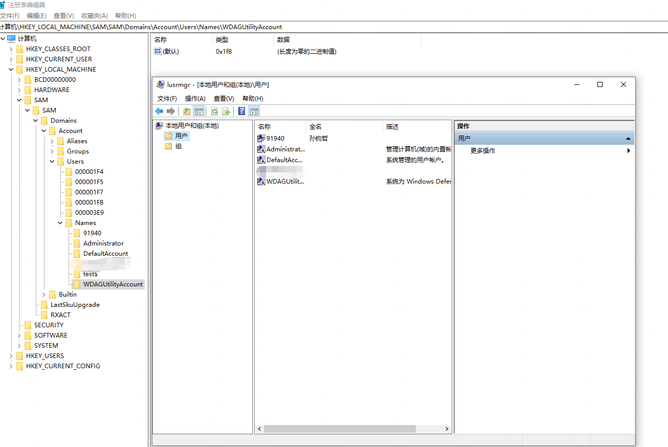 通过对比注册表和lusrmgr.msc的用户 判断是否有影子用户