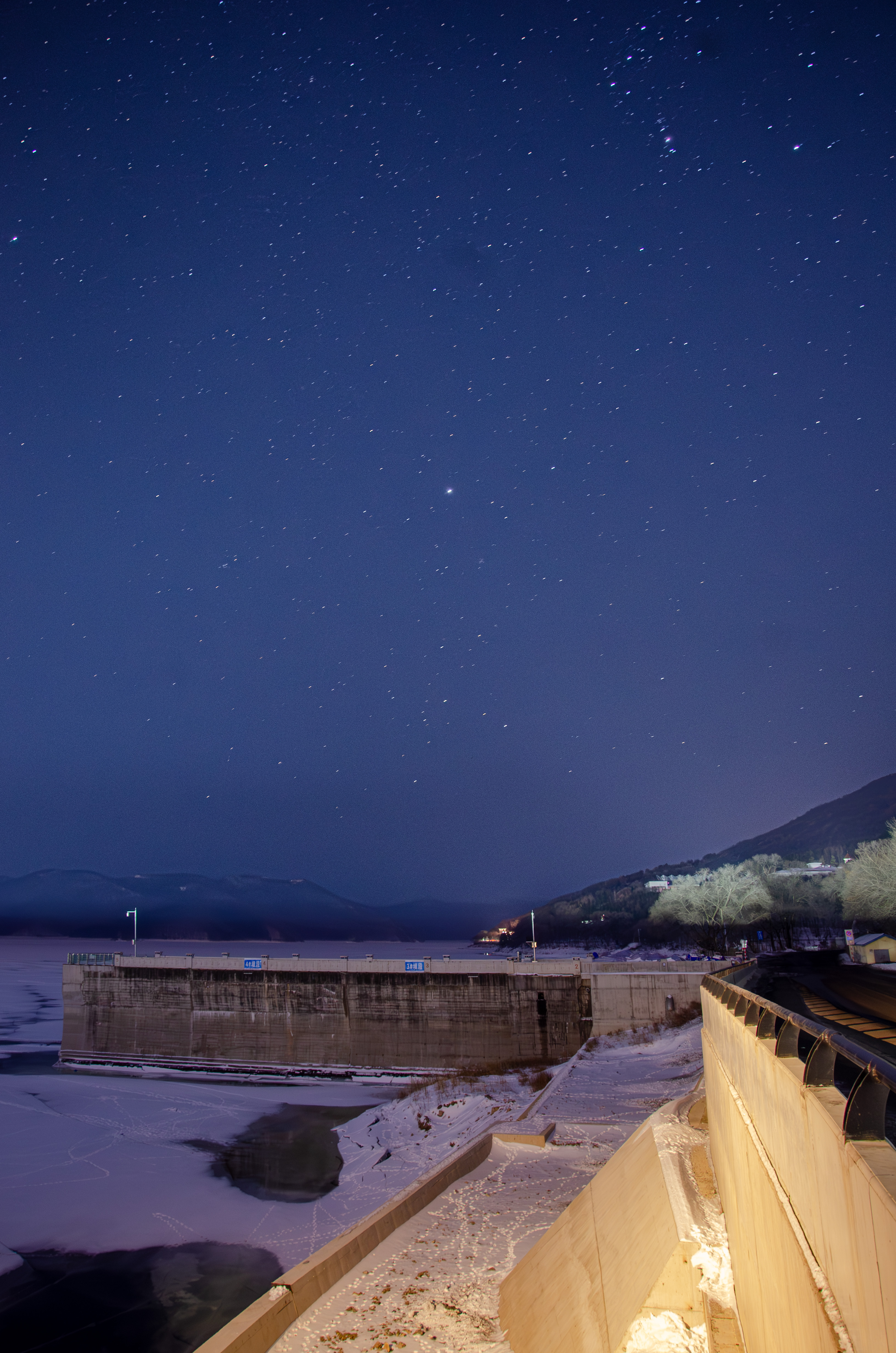 2024年2月12日,昨天,我站在新坝的一角,在漆黑的夜里,我尽力地将相机对准这名沧桑的老人。在猎户座的星光下,他用残破的身躯向我打着招呼。天太黑了,我这台相机用尽了力气也只贡献出这张满是噪点的照片,天上的星星也因曝光时间过长而产生了拖影。可历史就是充满噪点的,盖将自其变者而观之,星空就会成为一条条由拖影组成的圆环。