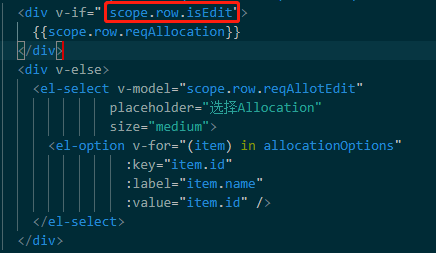 这时我想到之前的代码也有用到同样的结构,但是是没问题的,比较之后发现唯一不同,之前代码中的isEdit是后端传过来就有值的,不是前端临时赋值导致有些row有,有些没有的。