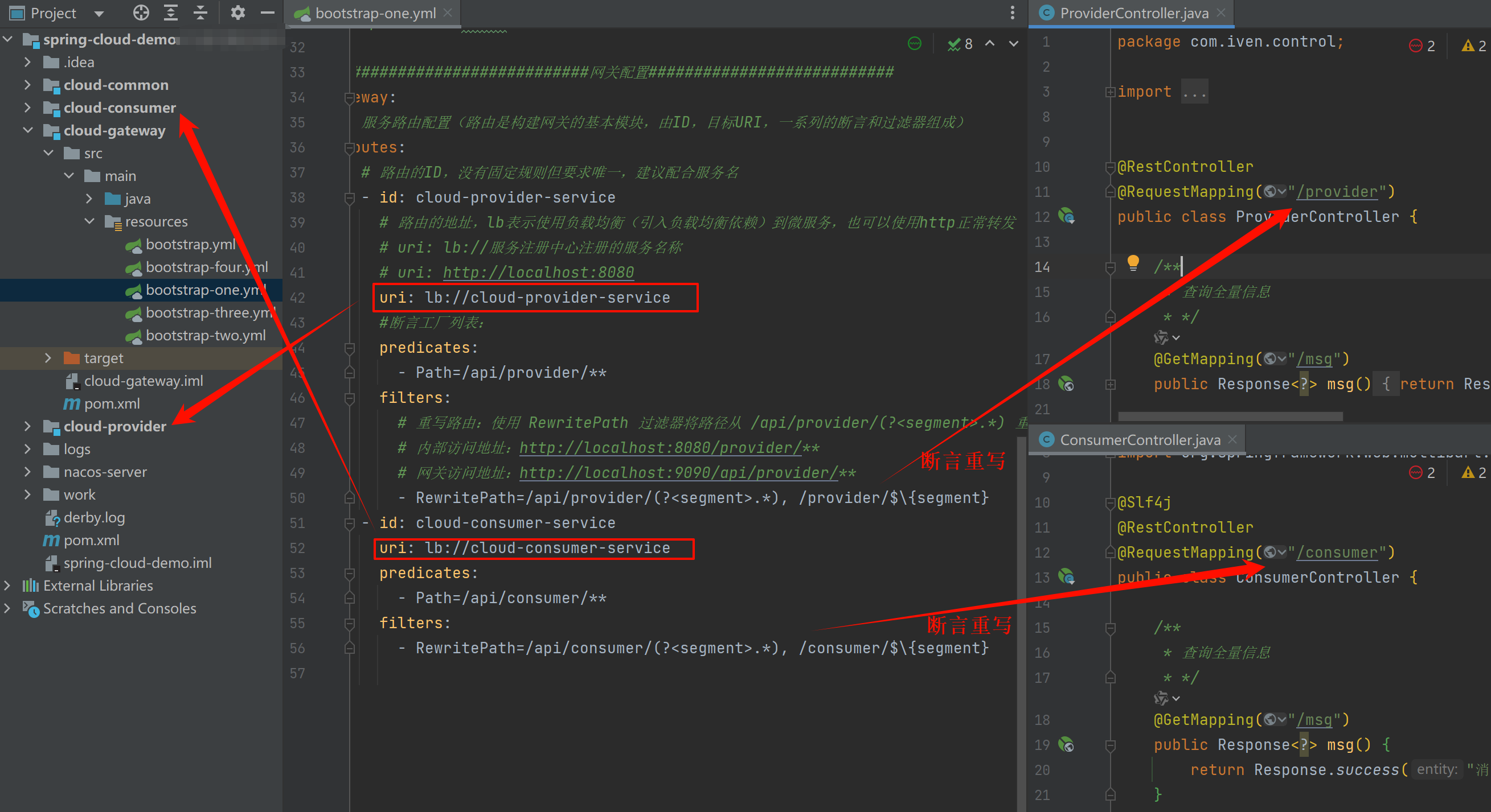 (1)、网关配置文件bootstrap-three.yml: