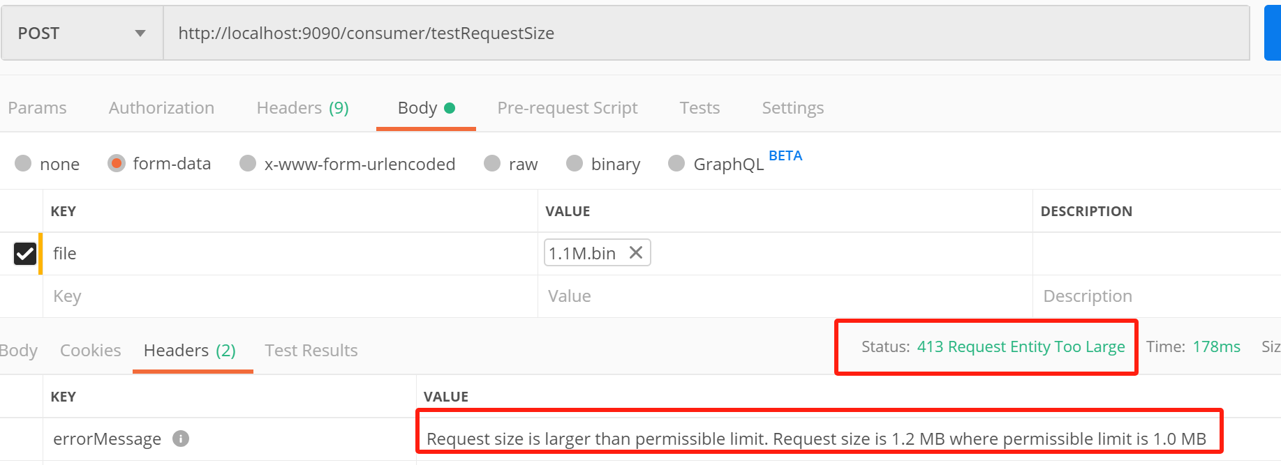 当客户端请求体大小超过 maxSize 设定值时,网关会直接拦截请求,返回 HTTP 413 (Payload Too Large) 状态码