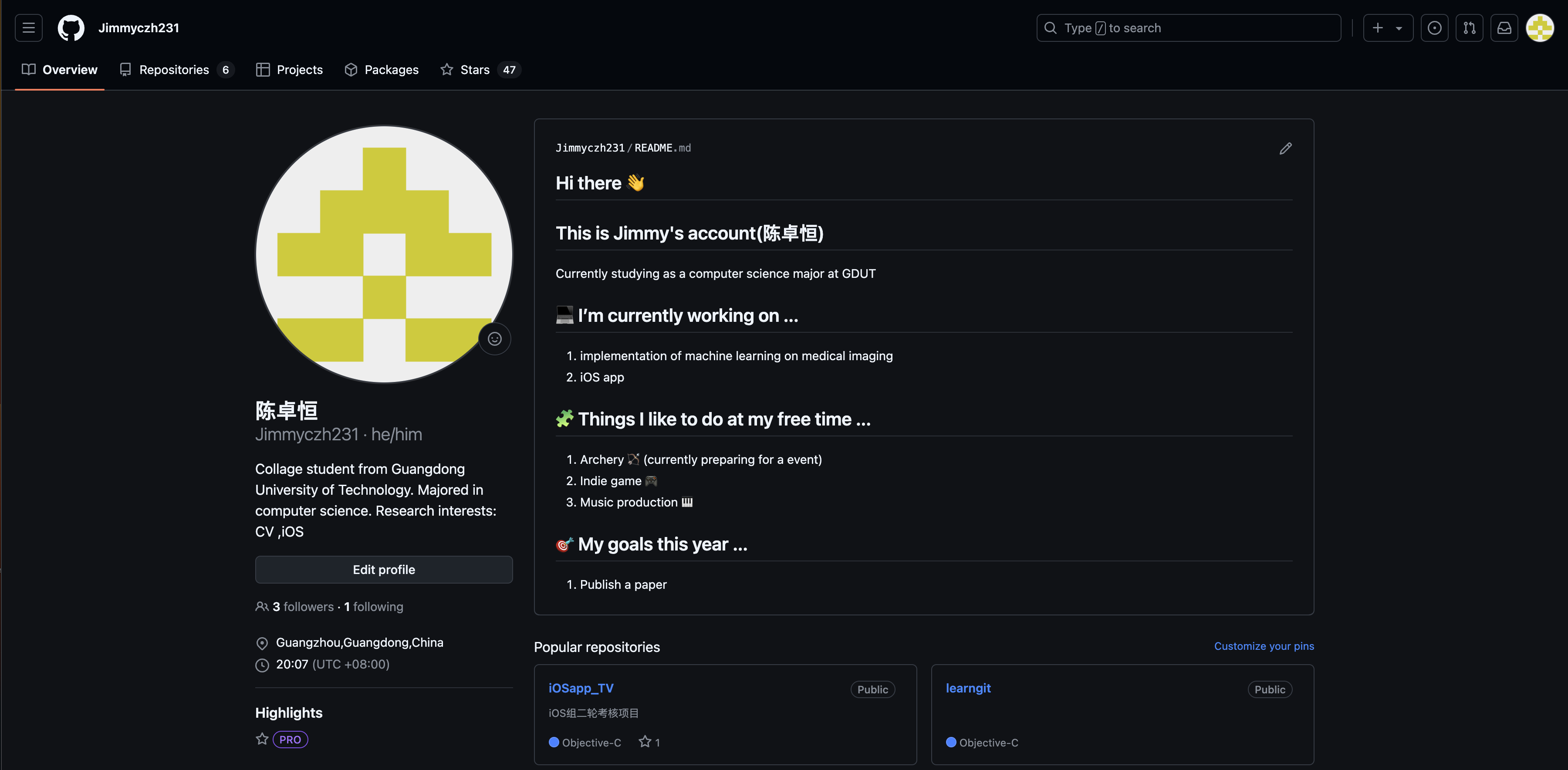 - 💻 学习过python、Objective-C、C语言,掌握基本的iOS软件开发相关技能、人工智能机器学习相关知识及pytorch库的使用。