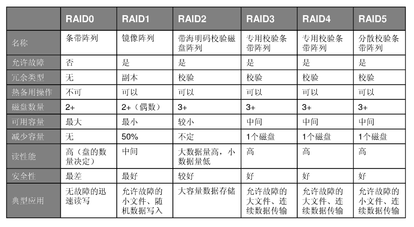RAID级别的比较