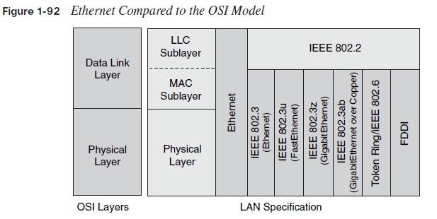下图显示的了LAN协议与OSI参考模型之间的映射关系。