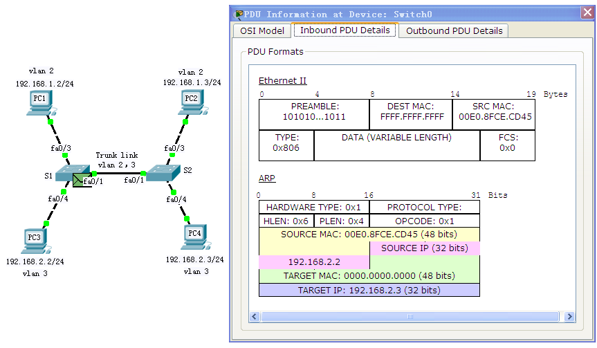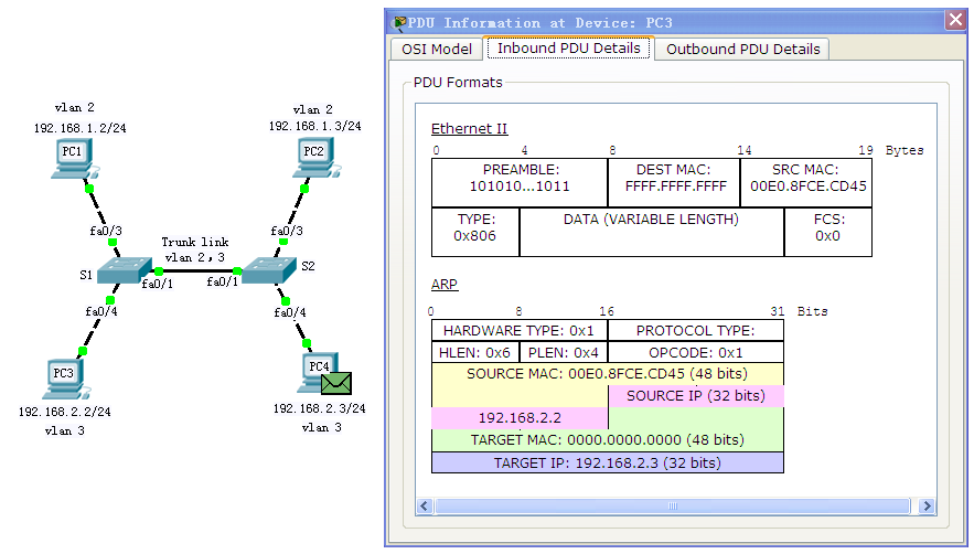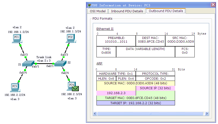 注:上图报文内容可参考Packet Tracer实验笔记1