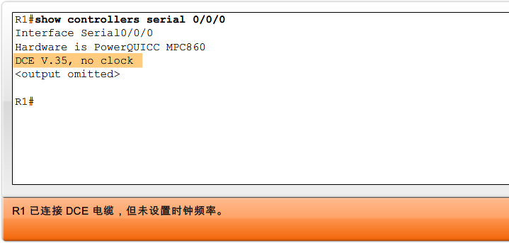 串行接口需要时钟信号来控制通信的时序。在大多数环境中,服务提供者(DCE 设备,例如 CSU/DSU)会提供时钟信号。默认情况下,Cisco 路由器为 DTE 设备。但是在实验室环境中,我们不会采用任何 CSU/DSU,当然也就不会有 WAN 服务提供者。