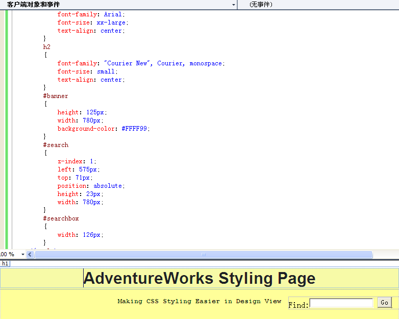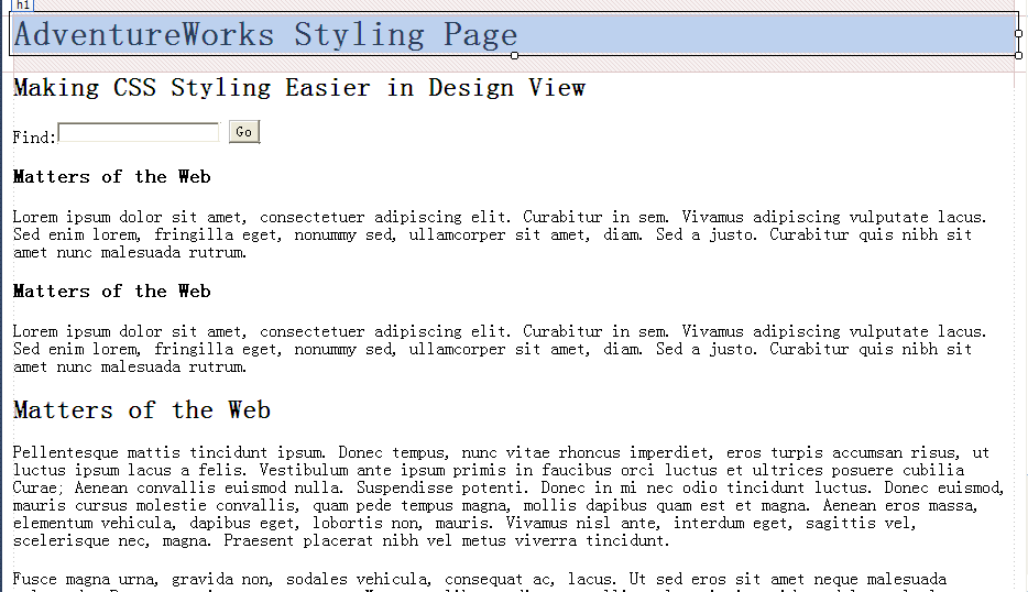 在“设计”视图中,单击标题区部分中的标题文本“AdventureWorks Styling Page”。